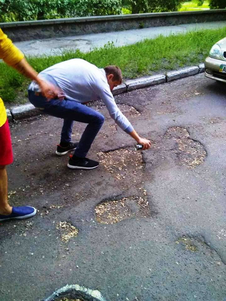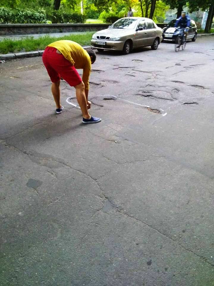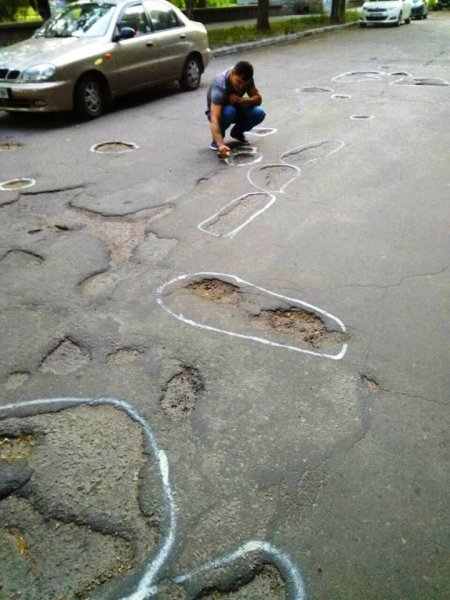 24 мая вечером кременчугские автомобилисты из сообщества взаимопомощи на дорогах продолжили свою акцию и обрисовали краской всю улицу Коцюбинского. По словам автомобилистов, на этом участке "яма на яме". На сей раз ямы просят мэра "услышать народ".