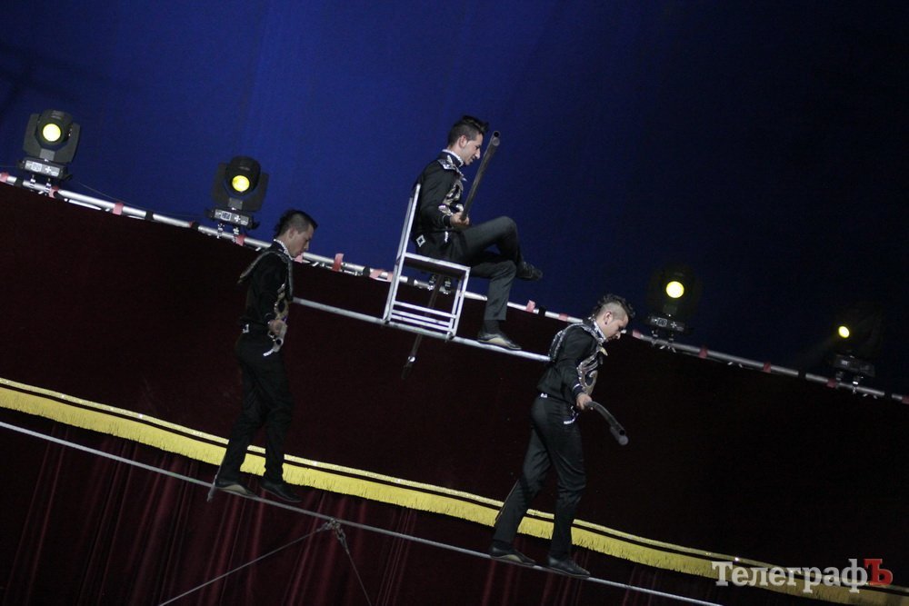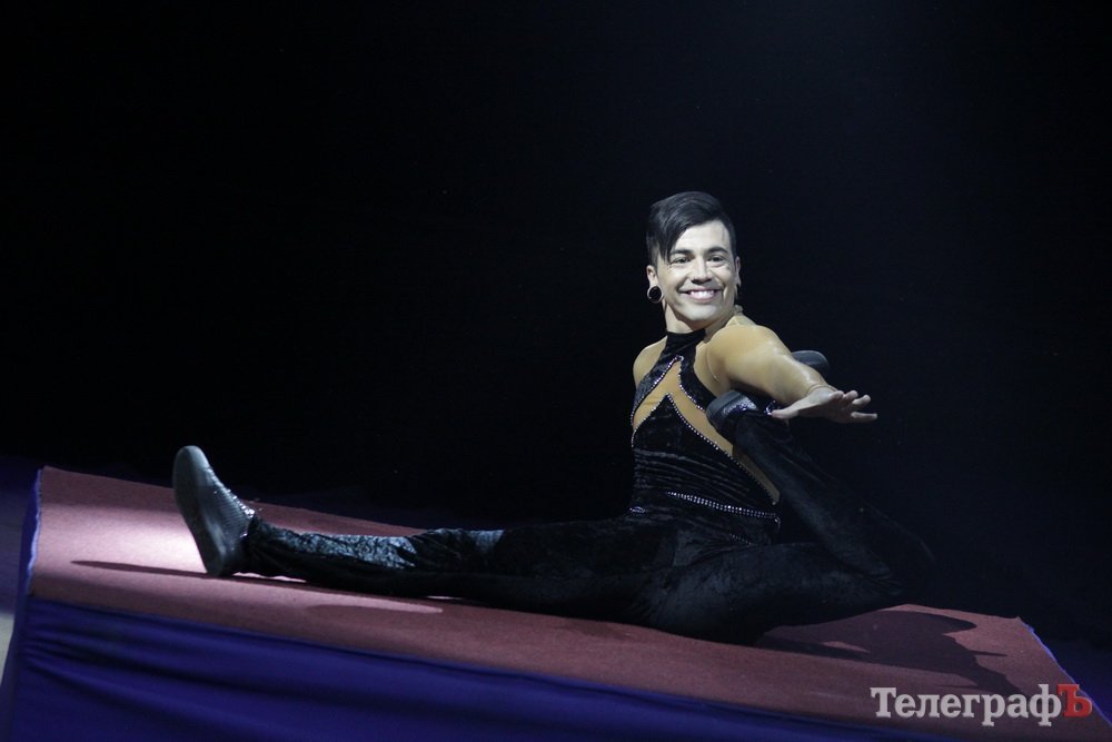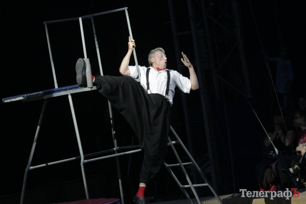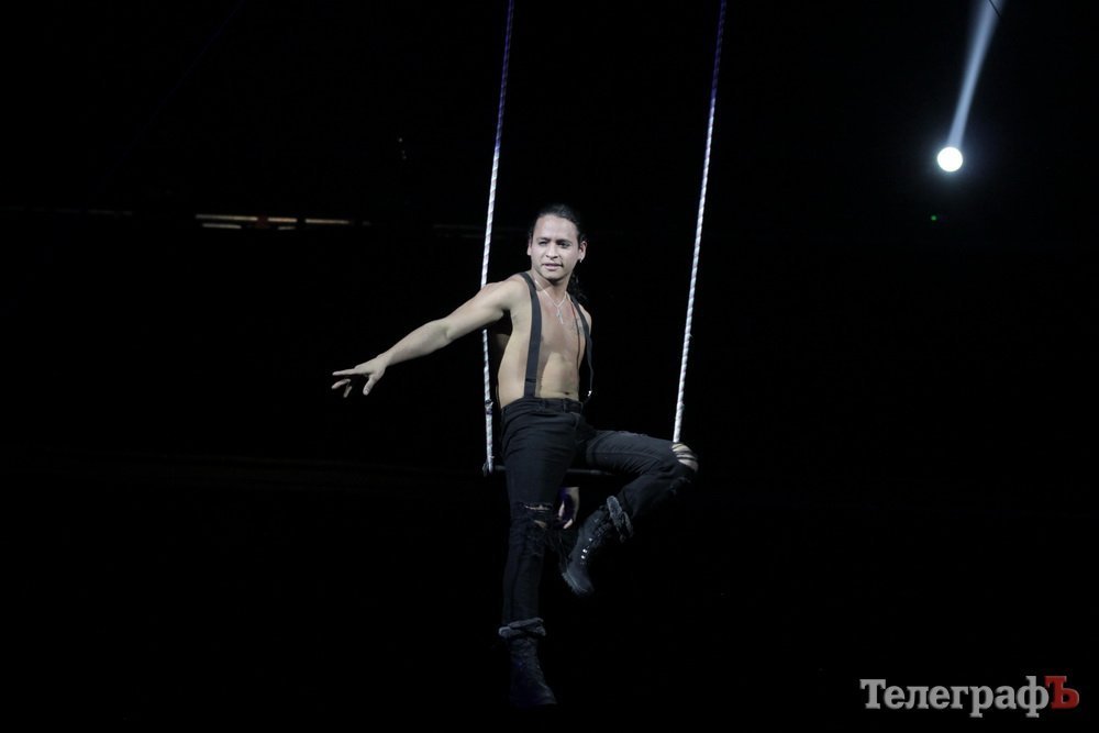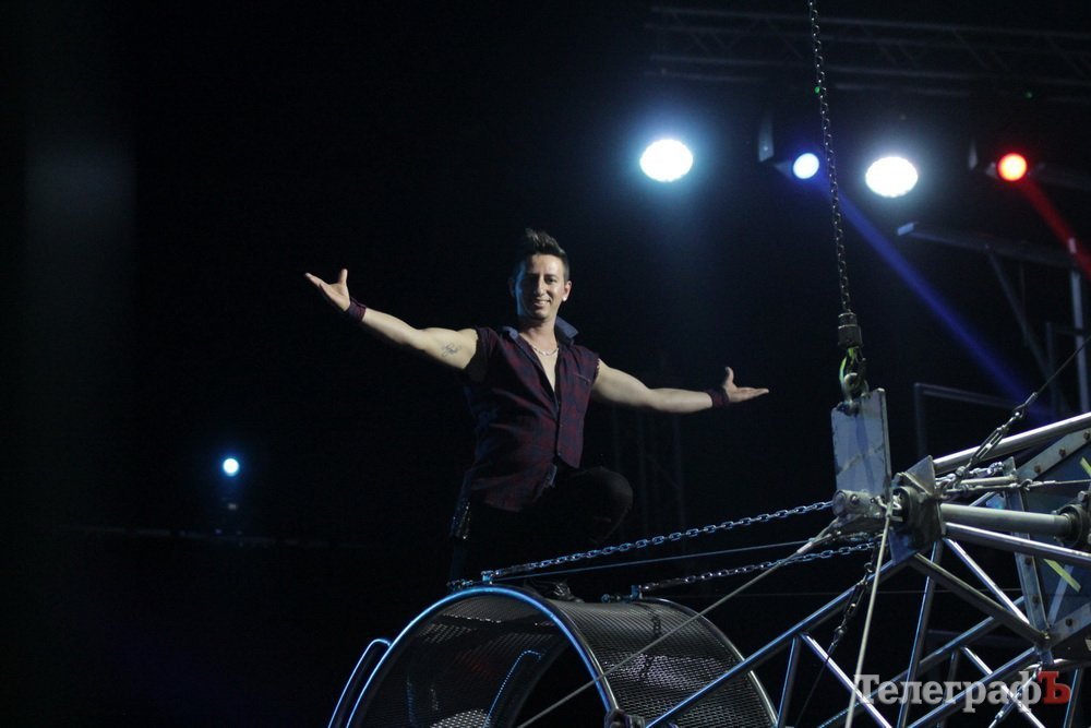 Номер, который в самом начале представления заставил кременчужан «ахнуть» и затаить дыхание – колумбиец делал головокружительное сальто под куполом цирка.