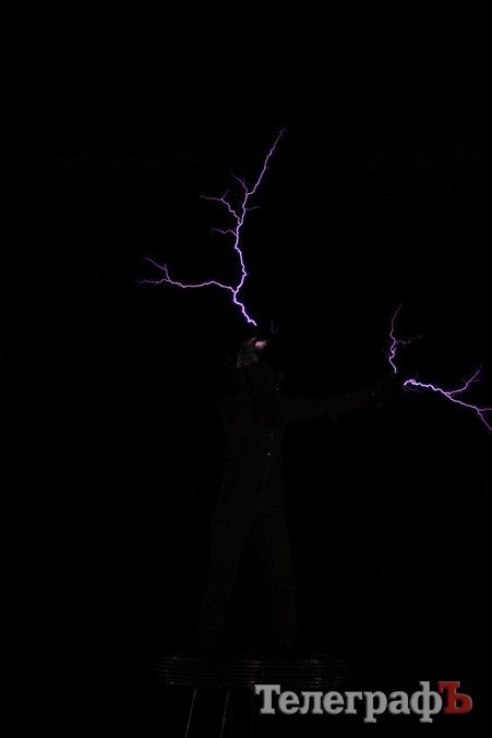 Поразило зрителей и «Тесла-шоу» в исполнении красивой украинской артистки. Девушка под музыку управляла электрическими разрядами.