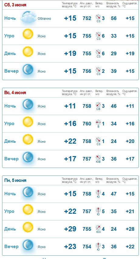 Сонячну погоду з перемінною хмарністю на увесь вікенд обіцяють нам на rp5. Вітряно буде у суботу, 3 червня. Попереджають про пориви до 13 м/с. У неділю, 4 червня, вітер вщухне, але здійметься знов у понеділок, 5 червня. Опадів не прогнозують. Температура повітря поступово підвищуватиметься: якщо у суботу, 3 червня, прогнозований температурний максимум +18ºС, то у понеділок, 5 червня - +28ºС.