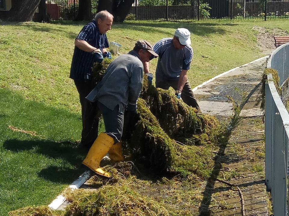 Зелені настільки багато, що працівникам втрьох приходиться витягати водорості.