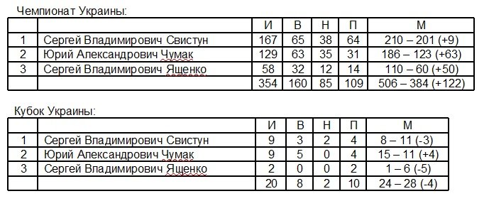 Личные показатели тренеров выглядят так: