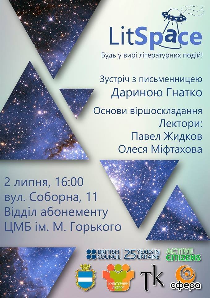 Що: Зустріч з сучасною українською письменницею Дариною Гнатко та лекція «Основи віршоскладання». Лектори – Павел Жидков, Олеся Міфтахова.