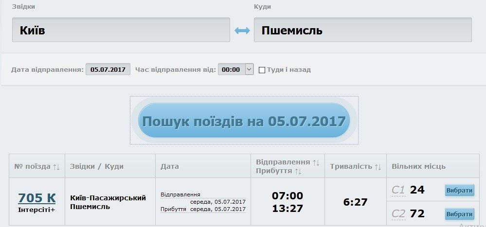 У дорозі зі столиці доведеться провести 6 годин 27 хвилин, а сидячий квиток 1-го класу обійдеться у 616 гривень, 2-го класу - 435 гривень.
