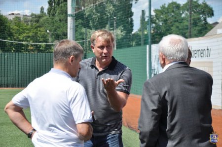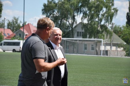 Іван Федоренко уважно вислухав інформацію від директора МФК "Кремінь" Андрія Недяка, щодо планів клубу покращити інфраструктуру стадіону, яка на сьогодні і без того знаходиться на дуже пристойному рівні.