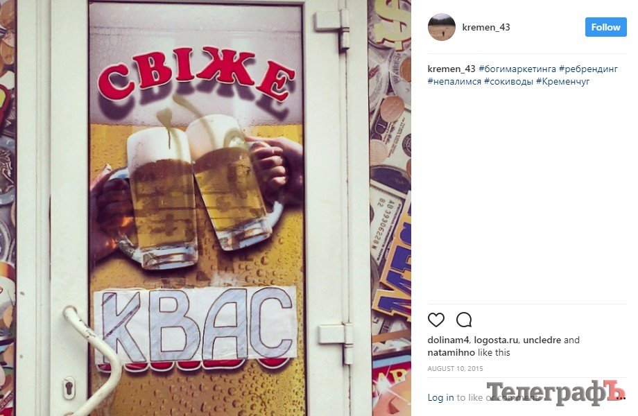 В Кременчуге на ул. Троицкой за забором Центра внешкольного образования (в народе - станция юных техников) работает бар. Работает много лет, радуя глаз своей легендарной вывеской «Свежее квас» (сейчас её заклеили друой информацией).