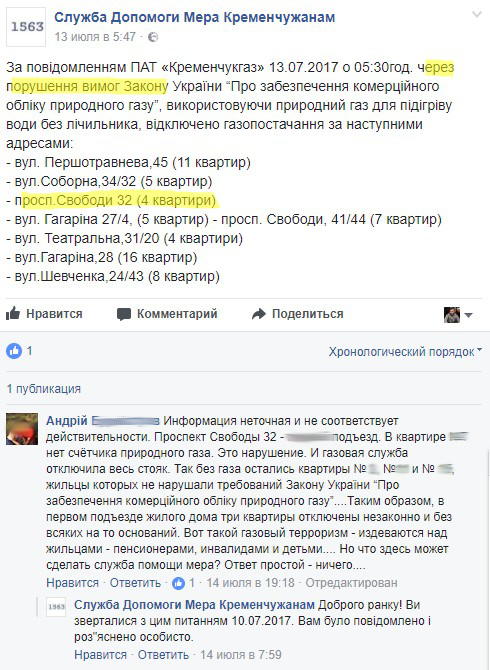 – Оказалось, что сосед уехал 27 июня за рубеж, – рассказал кременчужанин. – Появился он только в пятницу вечером (14 июля), в выходные, естественно, ничего не случилось. Он написал заявление на установку счётчика. Вечером 18 июля газ включили.