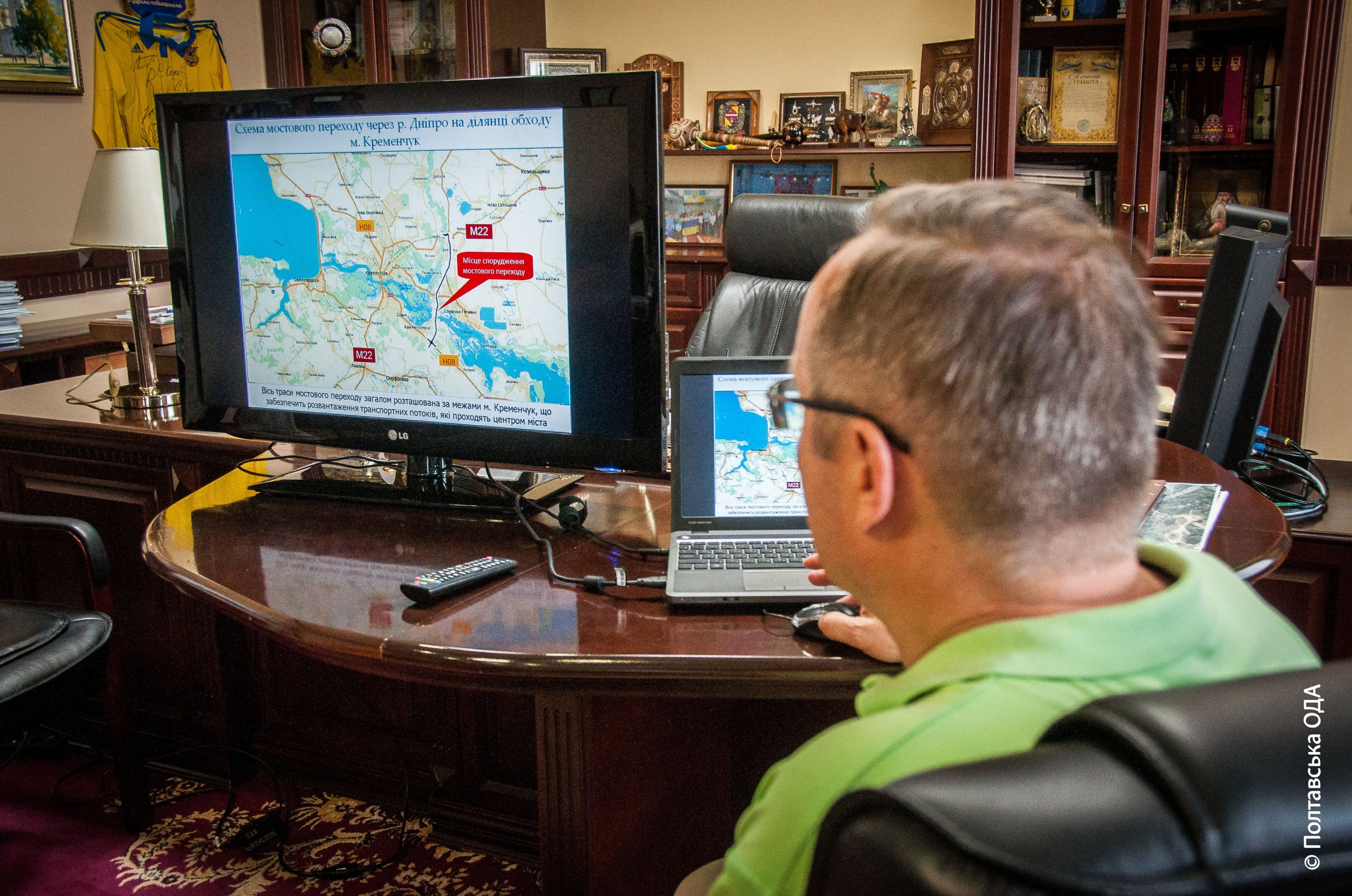 Проект будівництва автодороги Полтава–Олександрія на ділянці обходу Кременчука, включаючи зведення мостової переправи через Дніпро, виконає китайська компанія «China road and bridqe corporation». Саме з нею 22 березня цього року підписали Меморандум керівники «Укравтодору».