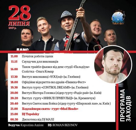 • Атмосферу створять ведучі: 28 липня – Кароліна Ашіон (м. Київ); 29 липня – MC Razumovsky (м. Кременчук) та Євгеній Льопа (м. Кременчук); 30 липня – MC Артем Ткаченко (м. Кременчук);