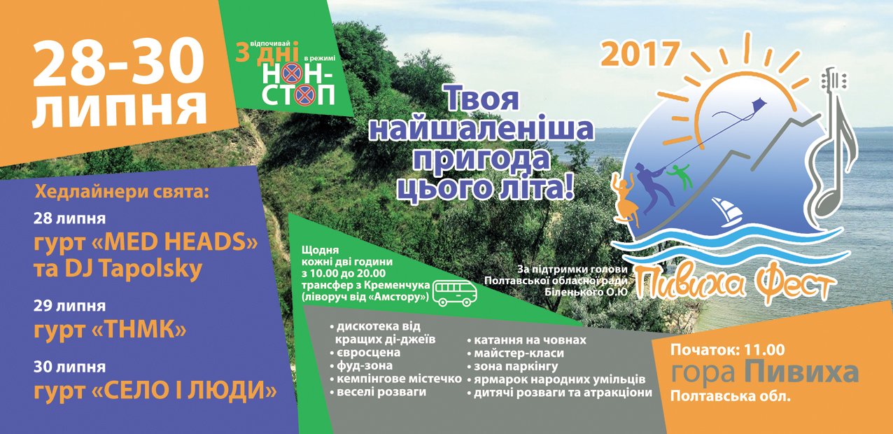 Фестиваль має привернути увагу до необхідності укріплення берега Кременчуцького водосховища в районі гори, адже щорік вода поглинає близько 7 метрів природної пам'ятки. Сьогодні вже розмито понад 600 метрів Пивихи. Аби звернути увагу на необхідність укріплення берегу, організатори воліють показати гору якомога більшій кількості людей. Для цього на фестивалі буде організована велика кількість різноманітних оглядових екскурсій. Подивитись на пивиху можна буде з літака, з повітряної кулі, з квадроциклу, риболовецького судна та з яхти з червоними вітрилами. Також будуть кінні прогулянки. Хедлайнерами фестивалю є ТНМК, Mad Heads та «Село і Люди».