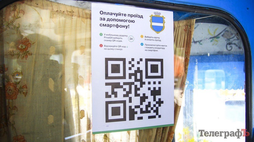 Во первых, стоит отметить, что не в каждой машине предлагается такая услуга. Сначала мы подумали, что QR-коды есть только в новых троллейбусах, но это не так. Просто не везде еще успели повесить.