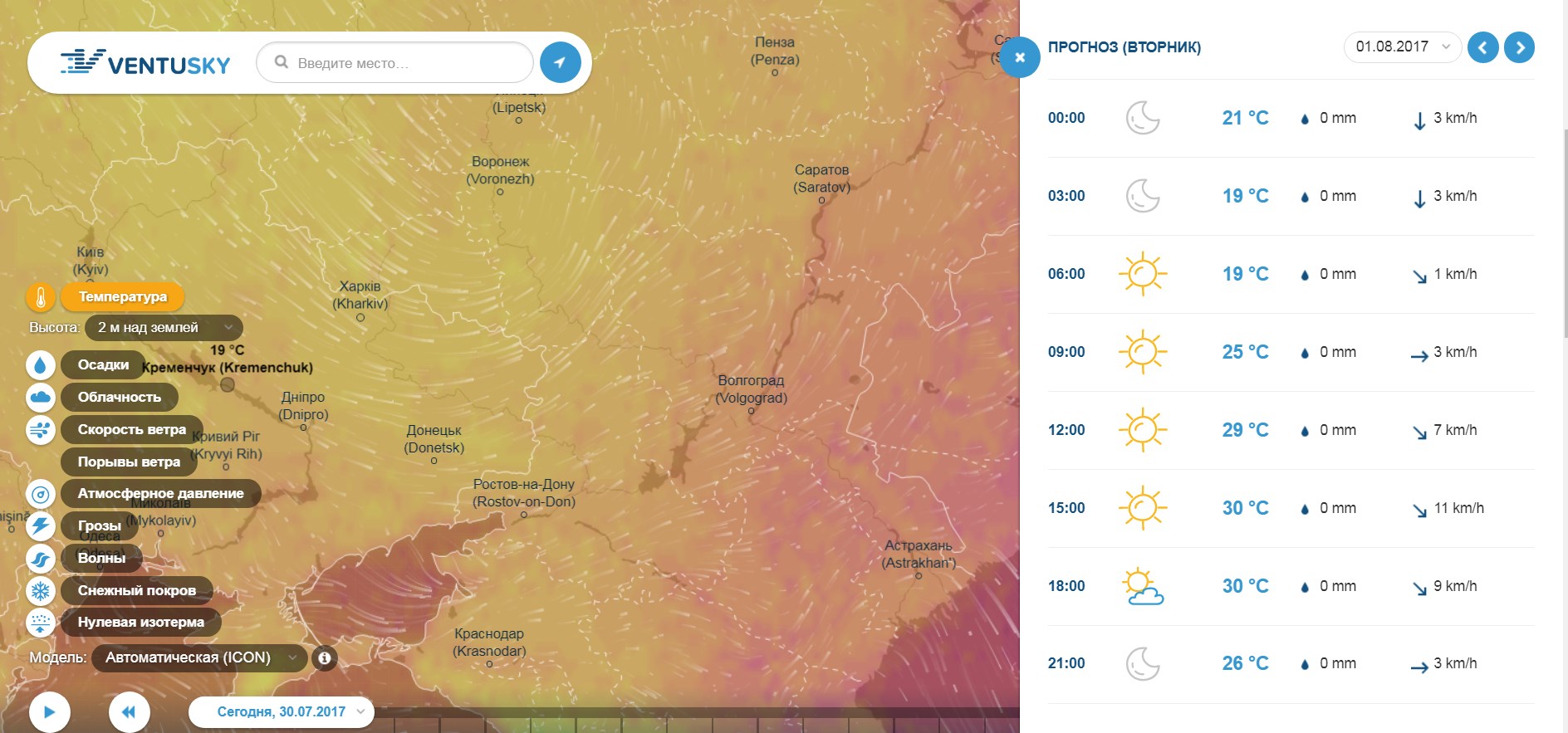 За прогнозом Ventusky, повітря прогріється до +31ºС уже у вівторок, 1 серпня.