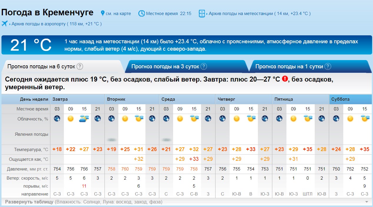 Rp5 обіцяє, що інколи сонце все ж ховатиметься за хмарами, але на температуру повітря це суттєво не вплине. Максимально сильно, до +35ºС, повітря прогріється у ближче до вихідних, 4-6 серпня. Густий туман з видимістю менше 1 км вкриє місто в ніч на вівторок, 1 серпня, та середу, 2 серпня. У понеділок, 31 липня, можливі пориви вітру до 11 м/с.