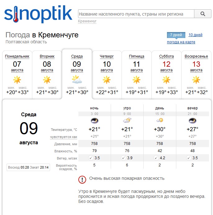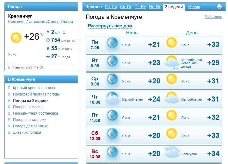 На Gismeteo нам тоже обещают дождик завтра, 8 августа. Со среды, 29 августа, температура воздуха будет постепенно повышаться и к воскресенью, 13 августа, достигнет +34ºС.