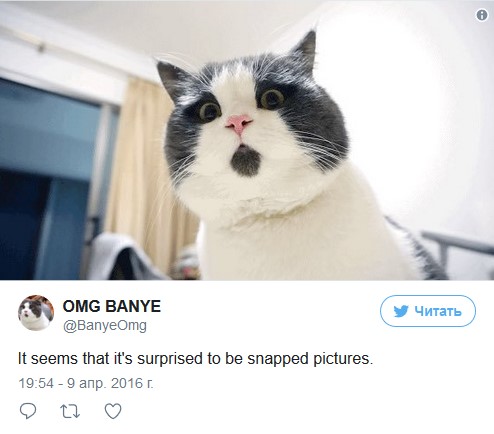 OMG-кот Банья. Его глаза всегда широко открыты, кажется, что кота поражает буквально все. Информации про него мало, известно только, что живет он в Китае и ему уже целых 14 лет.