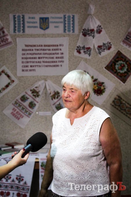 – Це поклик душі і серця, – говорить про виставку майстриня Ніна Касевич. – У 1947 році моя бабуся показала як вишивати хрестиком. Я вишила собі вишиванку, яку досі зберігаю. У радянські часи вишиванка не пропагувалася, але з часом я почала вишивати картини, серветки, рушники. За весь період вишивання подарувала лікарняним та навчальним закладам, храмам, рідним та друзям понад 60 робіт. Для міськвиконкому вишила берегиню княгиню Ольгу. Також вишивку подарувала президенту України у 2015 році (таку ж саму зробила майстриня для виставки – ред.).