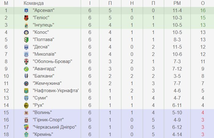 Турнірна таблиця Перша ліга