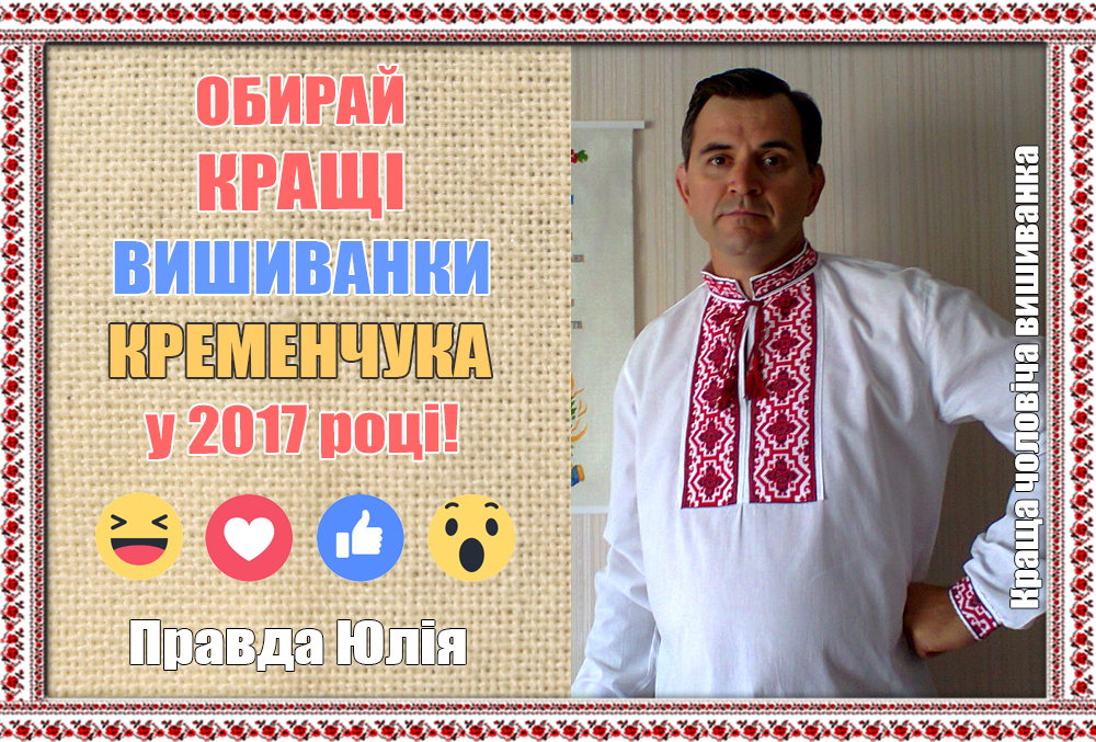 Із 15 по 20 серпня на сайті «Кременчуцького Телеграфа» триває голосування за найкращу вишиванку (або інший вишитий виріб) у 8 номінаціях загальноміського конкурсу «Вишиваний Кременчук».
