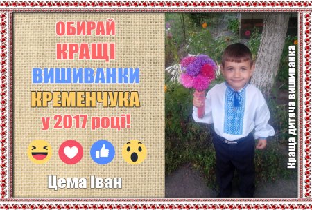 Із 15 по 20 серпня на сайті «Кременчуцького Телеграфа» триває голосування за найкращу вишиванку (або інший вишитий виріб) у 8 номінаціях загальноміського конкурсу «Вишиваний Кременчук».