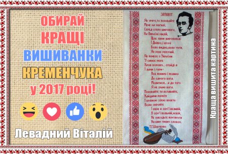 Із 15 по 20 серпня на сайті «Кременчуцького Телеграфа» триває голосування за найкращу вишиванку (або інший вишитий виріб) у 8 номінаціях загальноміського конкурсу «Вишиваний Кременчук».