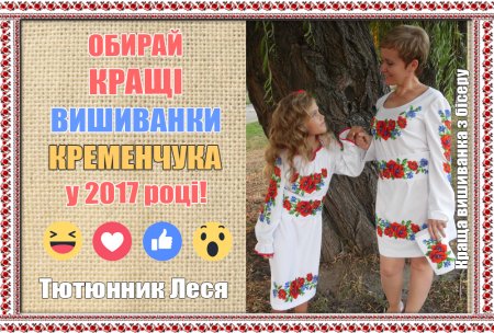 Із 15 по 20 серпня на сайті «Кременчуцького Телеграфа» триває голосування за найкращу вишиванку (або інший вишитий виріб) у 8 номінаціях загальноміського конкурсу «Вишиваний Кременчук».