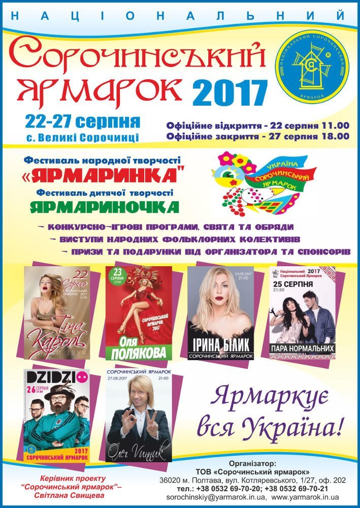 11 серпня на офіційному сайті Сорочинської ярмарки оприлюднили інформацію про вартість входу на вечірні концертні програми на головній сцені ярмарку. Вхідний білет обійдеться в 100-150 гривень, в залежності від артистів: