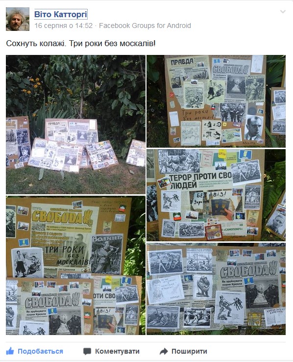 16 серпня кременчуцький художник Вітто Каторгі (Вадим Каторгін) похизувався у Facebook новими мейларт-колажами.