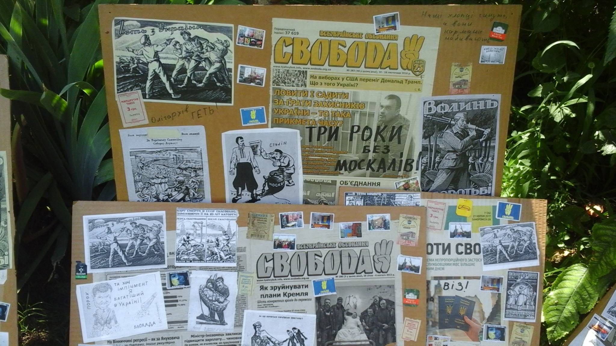 «Сохнуть колажі. Три роки без мocкaлiв!» – підписав фотографїї митець.