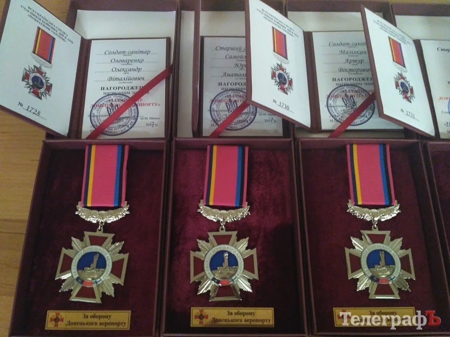 Також нагрудні знаки «За оборону Донецького аеропорту» вручили п’ятьом «кіборгам» з Кременчука. Нагороди вручили за внесок у зміцнення обороноздатності Української держави, мужність, самовідданість і високий професіоналізм, виявлені під час бойових дій та при виконанні службових обов’язків.