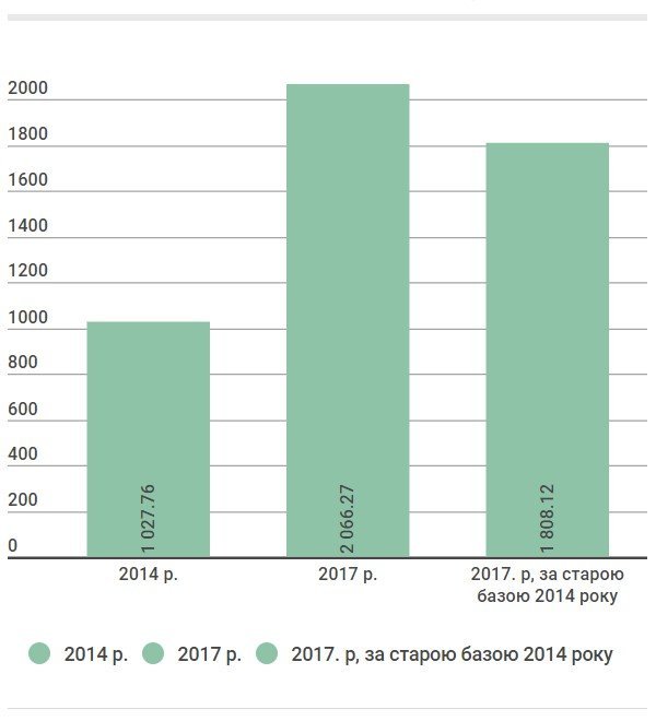 | Доходи | 2014, млн грн | 2017, млн грн | 2017, млн грн (за старою базою) |