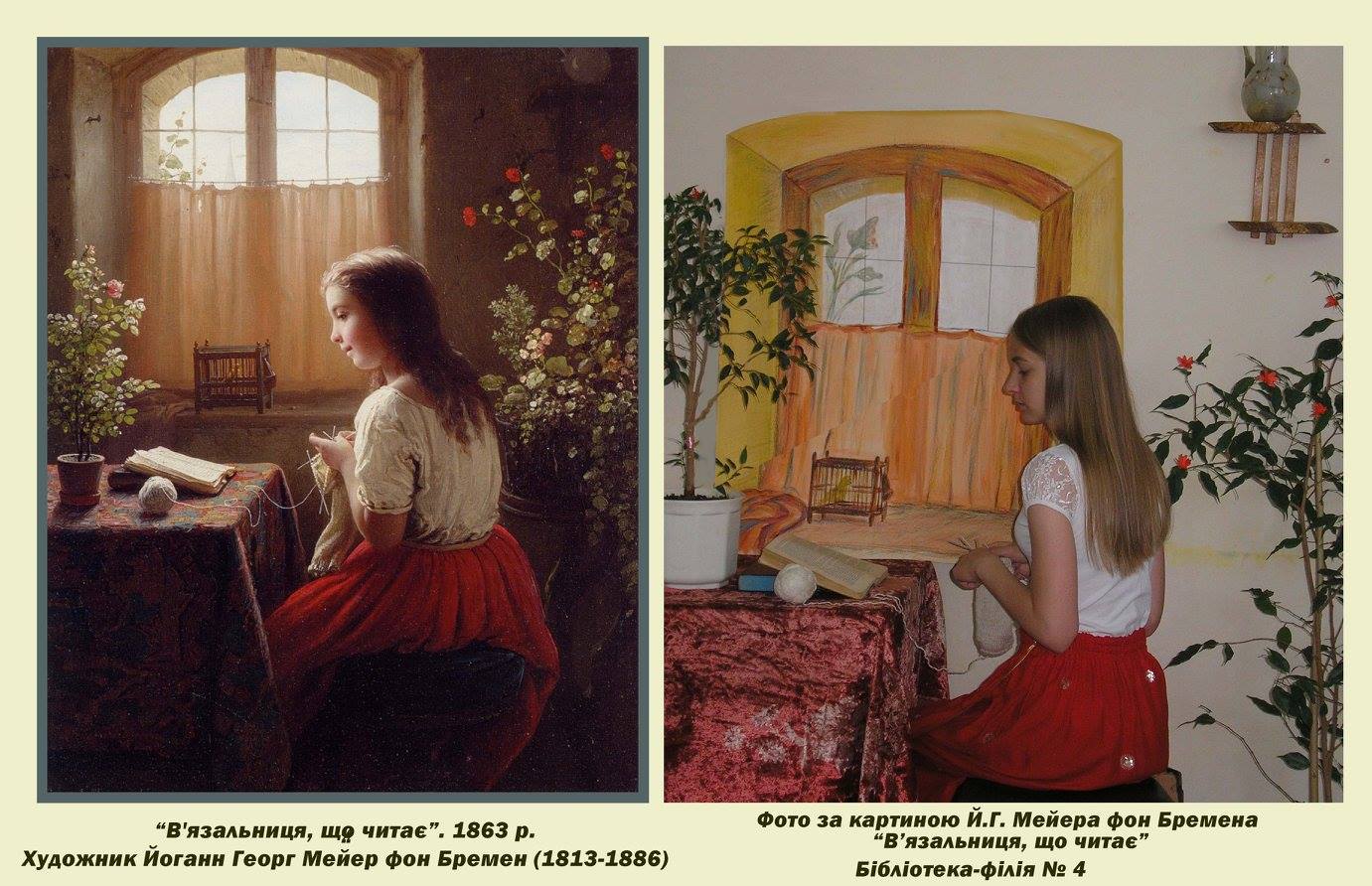 До Всеукраїнського дня бібліотек, який святкують щорічно 30 вересня, Центральна бібліотична система для дорослих у своєму Facebook презентує проект «Живі картини». Бібліотекарі відтворили відомі картини художників, де моделями стали працівники книгарень.