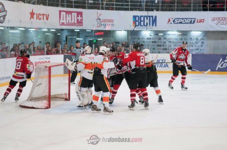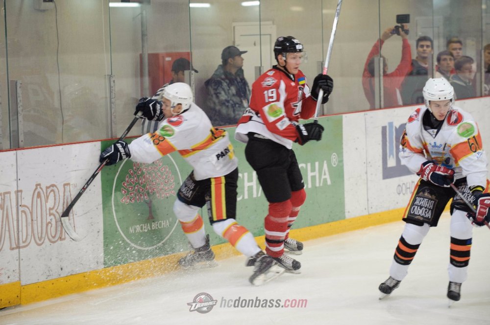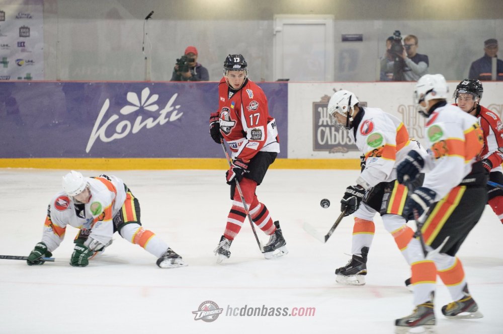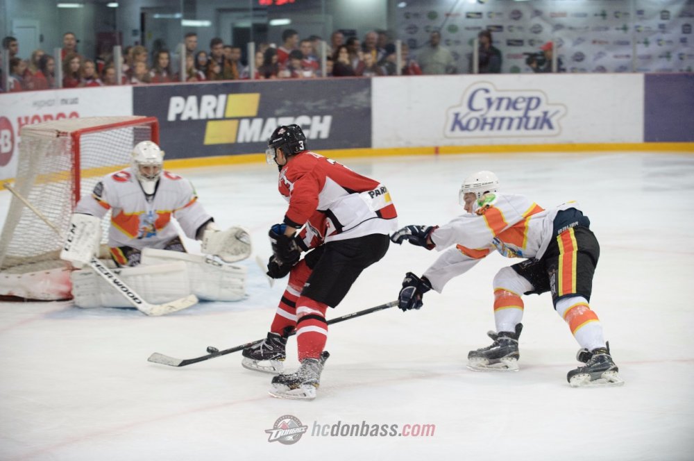 Кременчужани почали гру впевнено, створивши кілька непоганих моментів біля воріт суперника. Але на 9 хвилині матчу захисник донбасівців Юрій Шпак кинув від синьої лінії і закритий на п'ятачку воротар «Кременчука» Микита Петленко пропустив шайбу. Перед перервою Денис Мостовий подвоїв рахунок і команди так пішли в роздягальні з цифрами на табло 2:0.