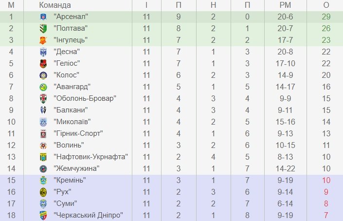 Турнірна таблиця Перша ліга