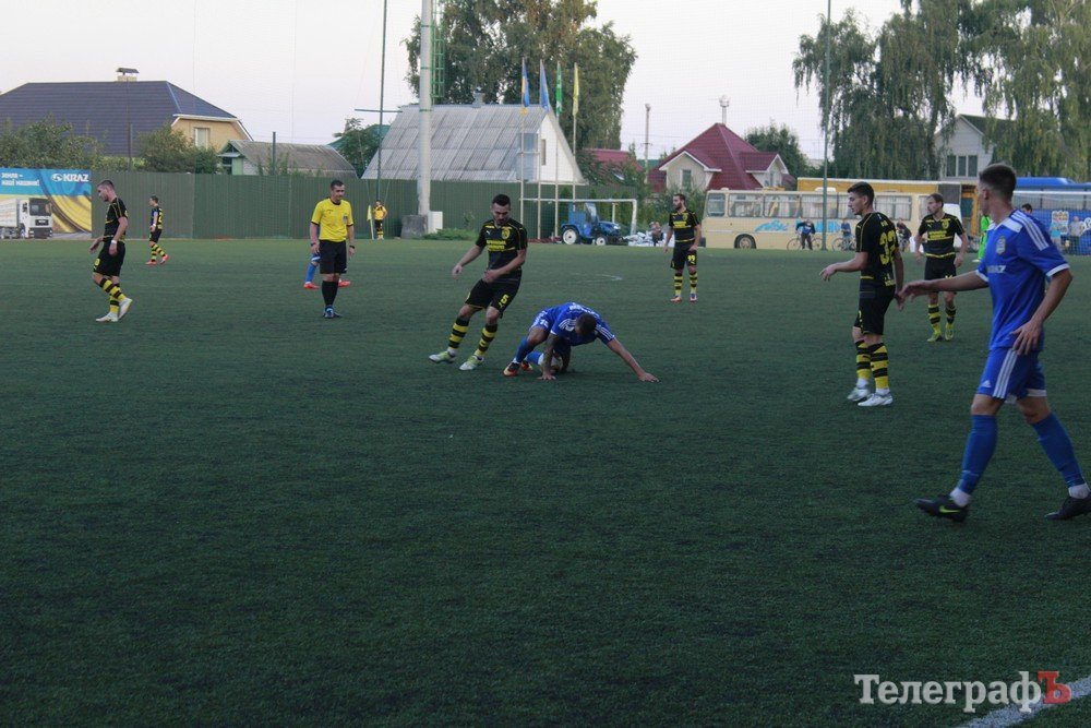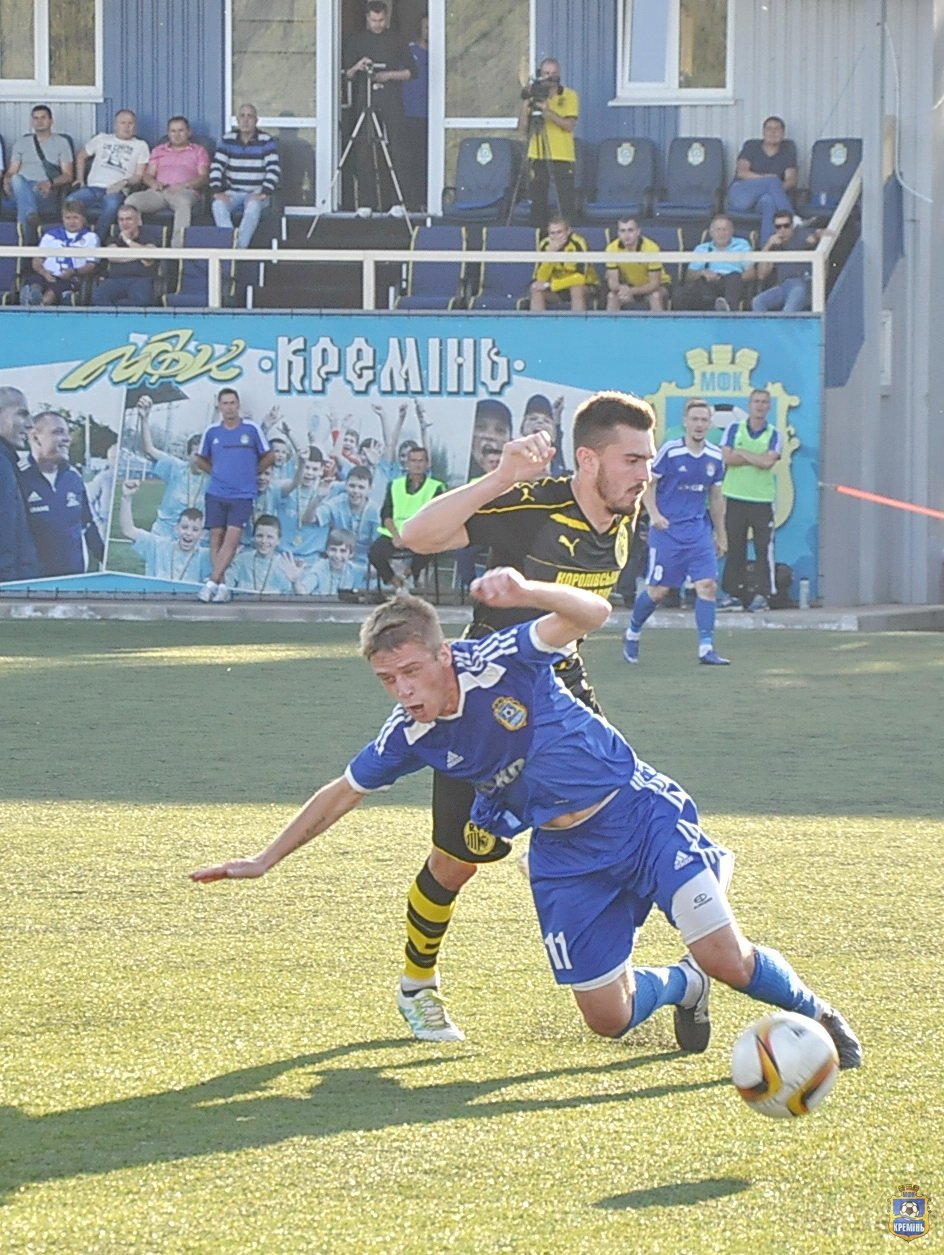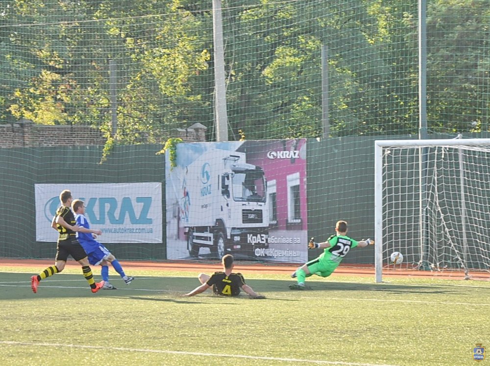 Гості з перших хвилин взяли в облогу ворота «Кременя», Андрію Олійнику не одноразово прийшлося відбивати удари «жовто-чорних». Але вже на 17 хвилині «Кремінь» розгорнув контратаку, отримав подачу від Бичкова Авраменко пере направив на Степанчука, який без проблем прострелив у ближній кут воріт – 1:0. Бомбардир «синьо-білих» Сергій Степанчук відсвяткував забитий гол зробивши сальто.
