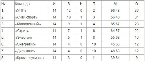 У першій лізі трійка призерів визначилася заздалегідь і питання було лише з якою кількістю очок фінішують «УПП», «Сіті спорт» і «Молодіжний».