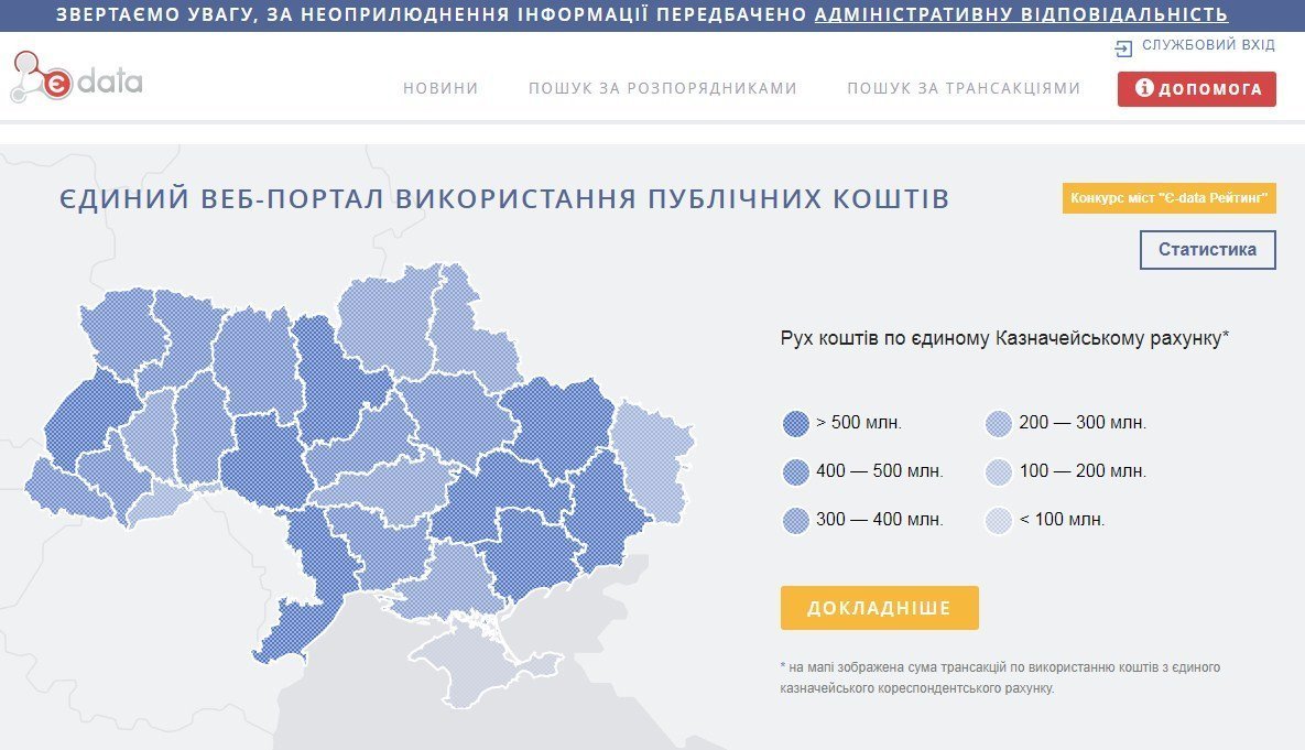 Министерство финансов Украины переводит единый портал публичных финансов е-data в промышленную эксплуатацию, говорится на сайте ведомства. Это означает, что ведение отчетности по платежам на портале станет обязательным для всех распорядителей бюджетных средств.