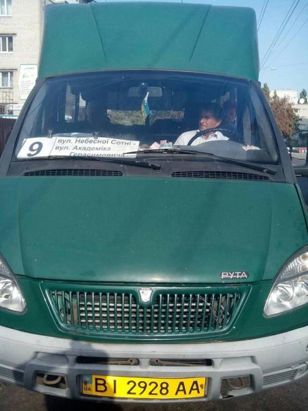 Сьогодні, 20 вересня, о 10:00 на зупинці «Центр» я сів у маршрутку №9, два місця біля водія були вільні, тому я одне місце зайняв. Даю водію за проїзд 10 грн і чекаю на решту, але водій мене ігнорує, я йому чемно нагадую про 5 грн, які він повинен мені повернути, і тут починається «кременчуцький сервіс» за новими тарифами, цитую: «Б***ь, я ещё тебе должен сдачу давать, что ты тут сел возле водителя на льготных местах».