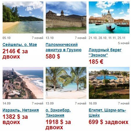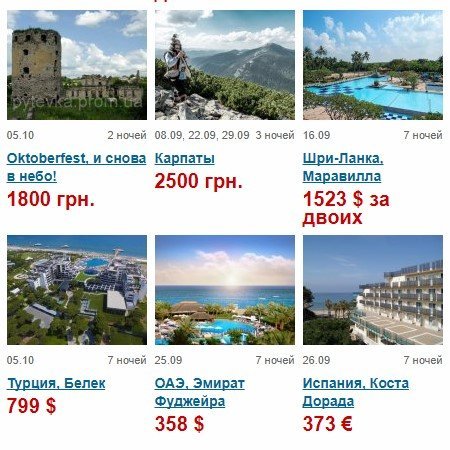 Выбирайте отдых по на свой вкус и по возможности вашего кошелька: Франция, Египет, Турция, ОАЭ, Греция, Грузия, Австрия, Карпаты, Сейшелы, Израиль, Октоберфест. От 25 евро.