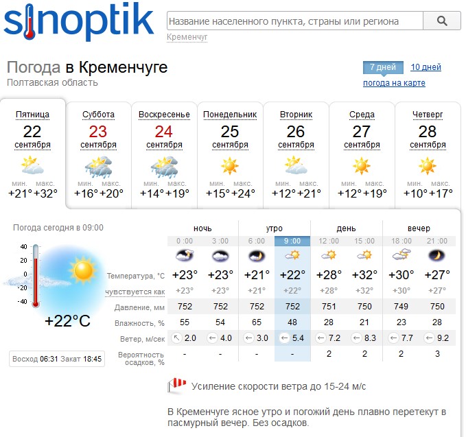 Сьогодні, 22 вересня, та завтра, 23 вересня, вночі по місту та області очікуються пориви вітру 15-20 м/сек. Про це попереджає прес-служба облдержадміністрації з посиланням на Полтавський обласний центр з гідрометеорології.