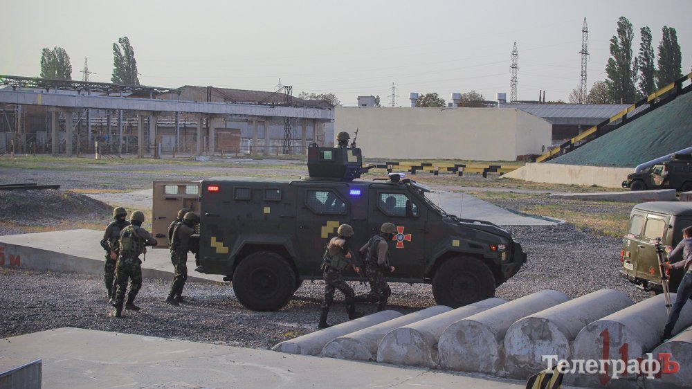 … Трое преступников взяли заложника и, угрожая его убить, потребовали автомобиль с полным баком горючего и выкуп. Но с террористами сыграли злую шутку: дали им авто, а баке которого всего литр горючего, при этом с помощью технического решения обманули приборы, и они показали полный бак. А под капотом машины заложили мину. И вот, когда террористы освободили заложника, началась операция по их задержанию. Группа бойцов подъехала на бронированном автомобиле KrAZ Spartan и успешно обезвредила преступников.