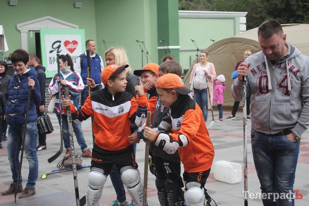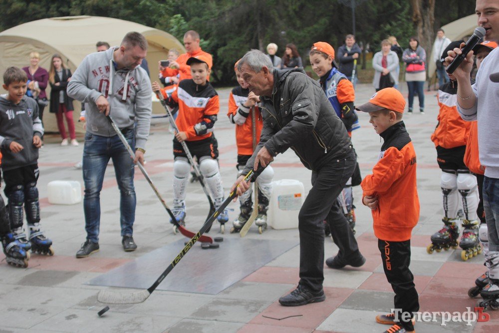 Свято хокею відбулося у Кременчуці в рамках святкування 446-річчя міста. Біля літньої сцени маленькі кременчужани не лише робили селфі в хокейній формі, а й грали в настільний хокей та на точність забивали шайби, найвлучніші отримували подарунки та печиво із зображенням хокеїстів.