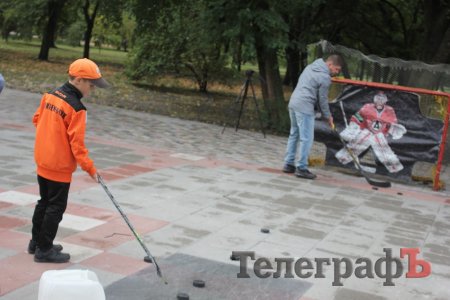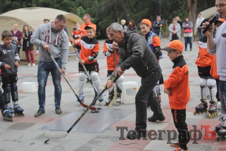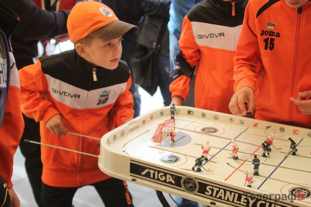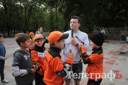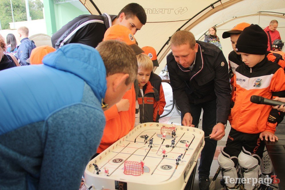 Мер Кременчука Віталій Малецький разом з заступниками спробували свої сили на точність в киданні шайби, а також зіграли з малечею в настільний хокей.