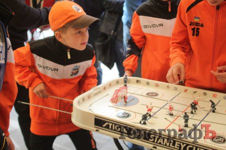 Маленькі кременчужани не лише робили селфі в хокейній формі, а й грали в настільний хокей та на точність забивали шайби, найвлучніші отримували подарунки та печиво із зображенням хокеїстів