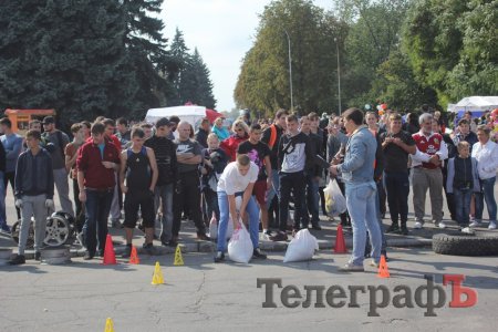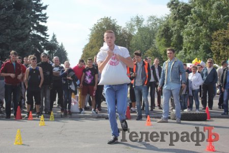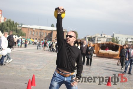 «Козацькі розваги» відбулися в рамках фестивалю «Солодкий Кременчук». На центральній площі Перемоги обирали найсильнішого тягаючи мішки з піском, піднімаючи гирі та металеві диски.