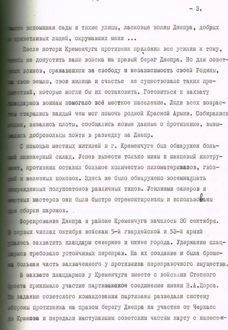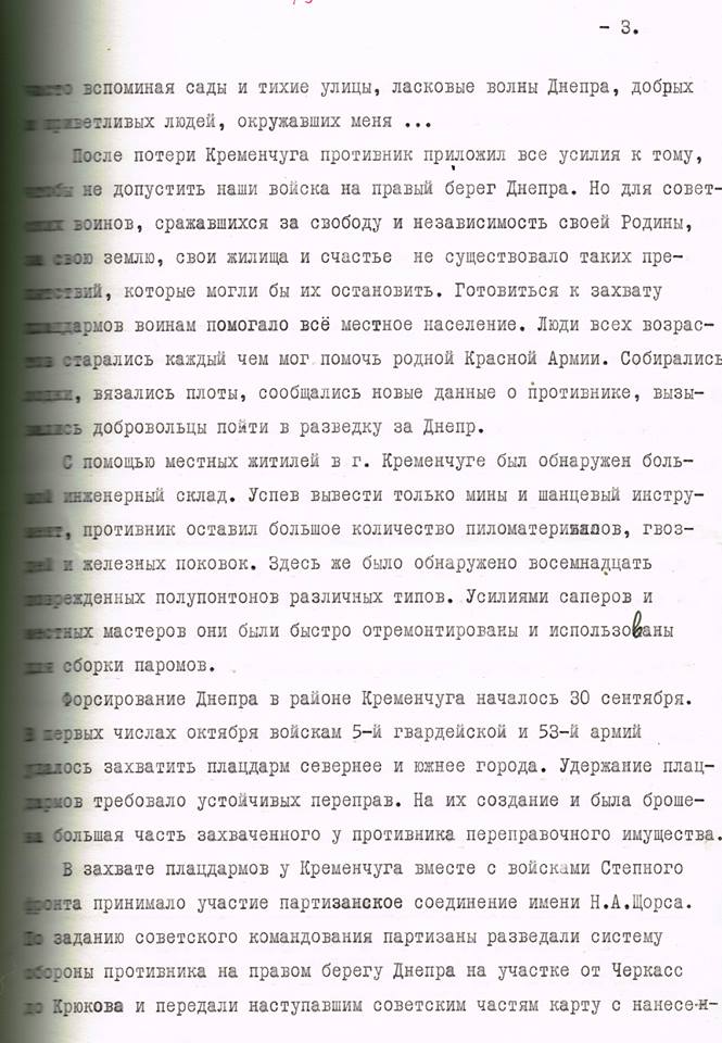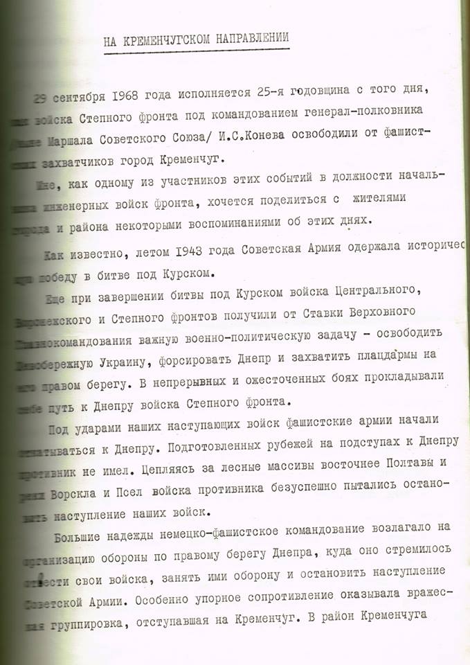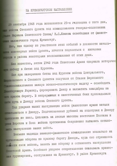 - Важко повірити, але на десятий день після визволення станція Кременчук почала пропускати ешелони з озброєнням, боєприпасами і продовольством. Були пущені перші поїзди на Полтаву, Харків, Ромодан.