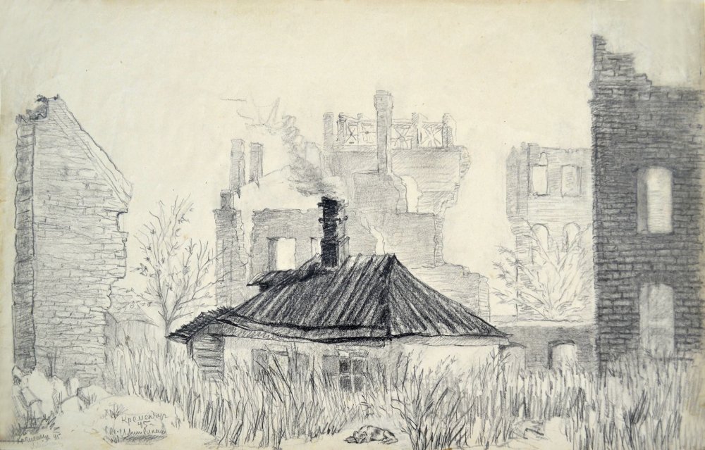 Гайшинська звертає увагу, що малюнки зроблені восени 1945-го, через 2 роки після визволення!