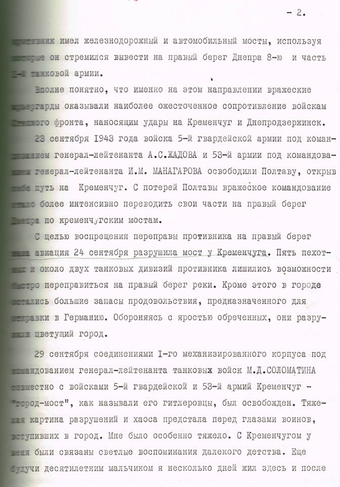 - Після визволення Крюкова максимально оперативно було відновлене залізничне сполучення між лівим і правим берегами Дніпра. Про це ви можете прочитати у спогадах військового інженера А.Цирліна.
