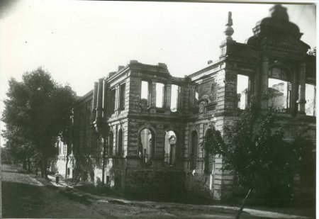 - Жовтень 1943 р. видався теплим. На вул. Пролетарській просто неба демонстрували кінофільми, а трохи згодом у відбудованому складському приміщенні суконної фабрики почав давати вистави драматичний театр ім. Саксаганського. Напівголодні люди тяжко працювали цілий день, а ввечері брали з собою стільці чи табуретки – і йшли до театру! На всіх спектаклях був аншлаг.