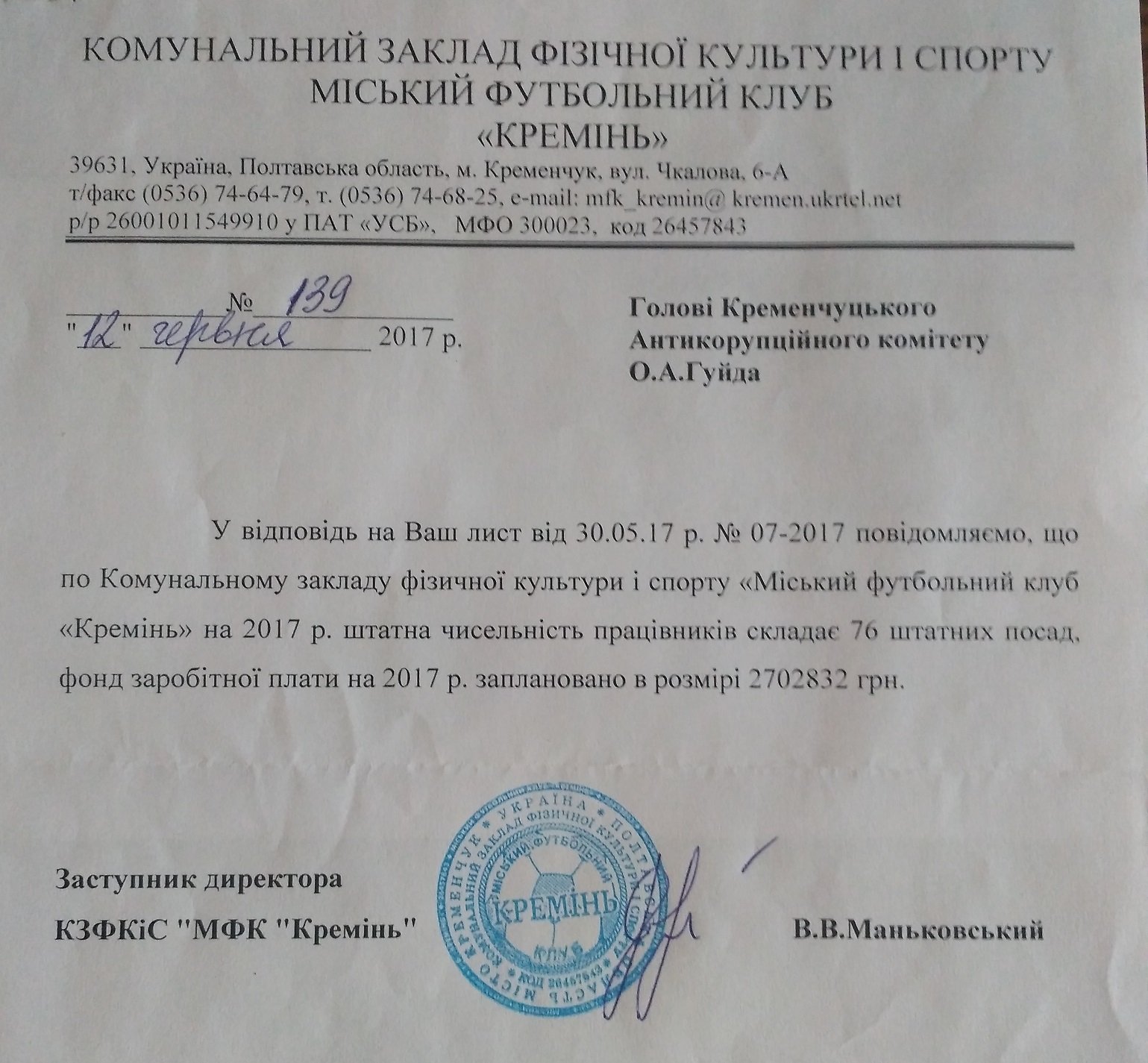 – В клубі є головний бухгалтер, гравець трактує як трактує. Якби не виплачувалася зарплата директор був би сьогодні в тюрмі. Не виплачуються преміальні, є невелика затримка. Ви подивіться скільки людей від нас прийшло і скільки прийшло. Повірте, футбольна спільнота дуже тісна, якщо десь когось починають кидати, то це обов’язково спливе. Як це було у Дніпрі чи Металісті, коли Маркевичу заборгували 5 млн. То воно і в пресі і в КДК фігурує. У нас такого немає.