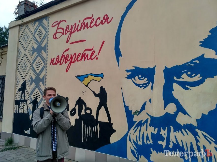 - Графіті Шевченку вже історія. Його відкрили у березні 2014 році після Революції гідності. Ескізів графіті було до речі два: один з молодим Шевченком, як на 100 гривневій купюрі та той який зараз зображений. Стрит-арт «Погляд», який знаходиться поруч також планувався кілька років тому інакшим. Кременчуцький художник Сергій Брильов спочатку планував зобразити погляд Надії Савченко, але після її звільнення з полону графіті змінило суть на погляд військових та людей, які пережили бойові дії.